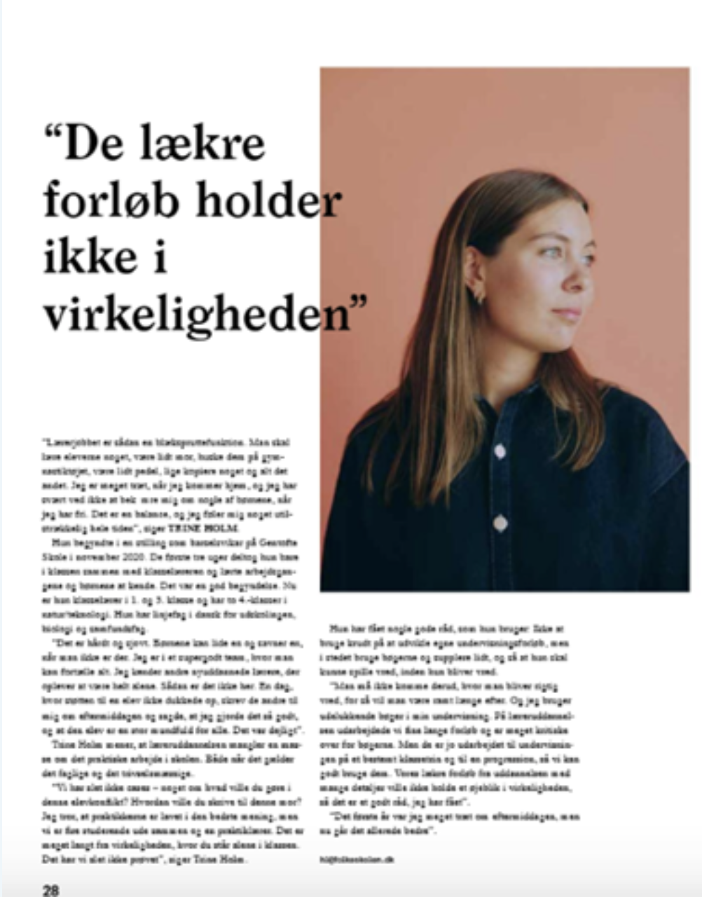 Trine fortæller om ”de lækre forløb”, som ikke holder i virkeligheden. Læs hele artiklen på Folkeskolen.dk, nr. 19, 2021